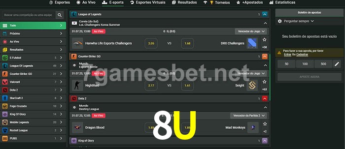 A aposta 8U oferece aos jogadores a experiência mais conveniente de apostas em eSports!